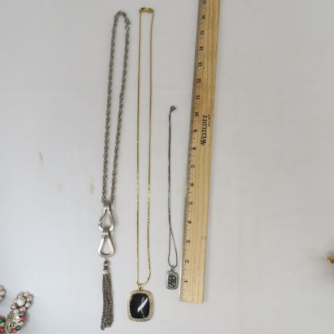 Vintage costume jewelry necklaces, pins and more 2 have brLken clasps, Park Lane, Sweden pewter, Givenchy, laguna, Star and others Please ask questions and read terms & conditions before bidding.