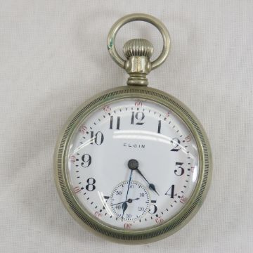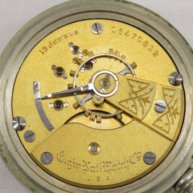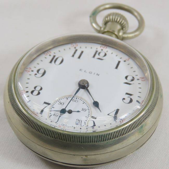 Elgin 15j Pocket Watch, Nickel Silver case, works Illinois Watch case Please ask questions and read terms & conditions before bidding.