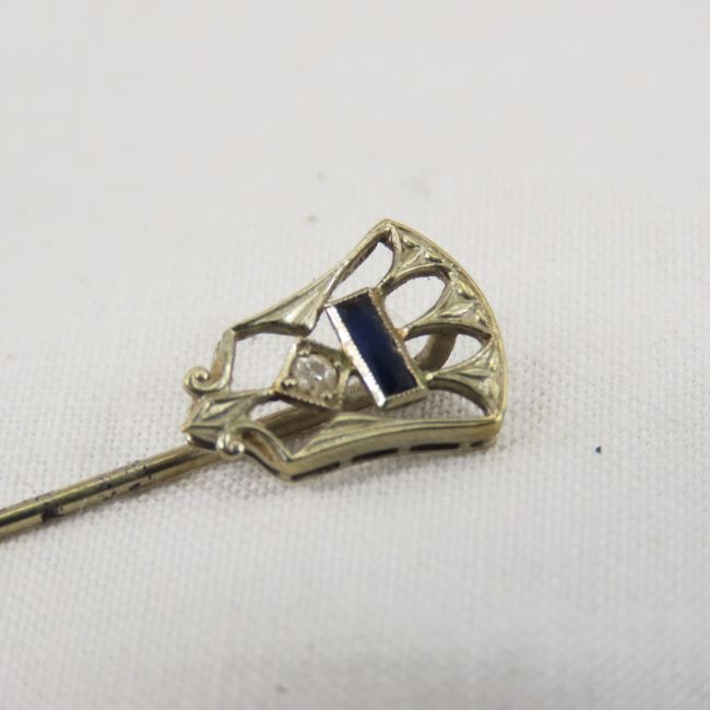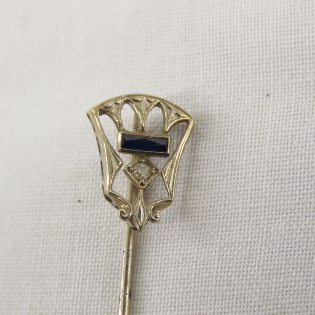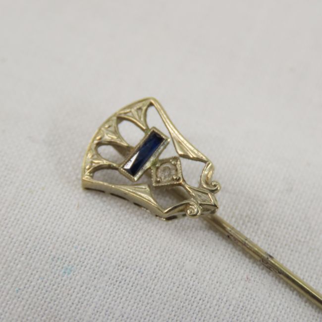 10k Gold Diamond & Sapphire stick pin 1.4g Please ask questions and read terms & conditions before bidding.
