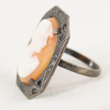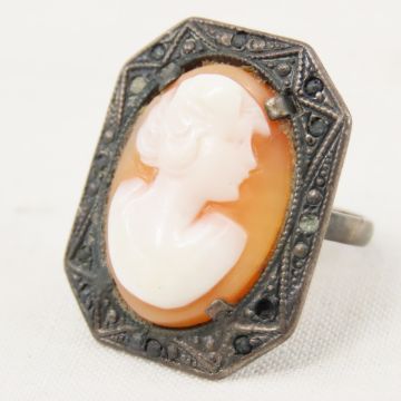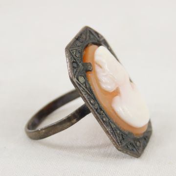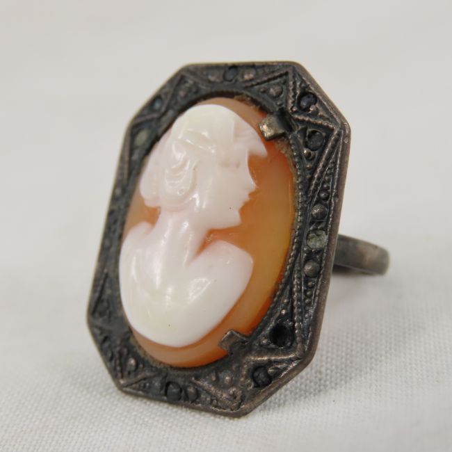 Antique Sterling and Cameo Ring size 6 1/4, 6.1g Please ask questions and read terms & conditions before bidding.