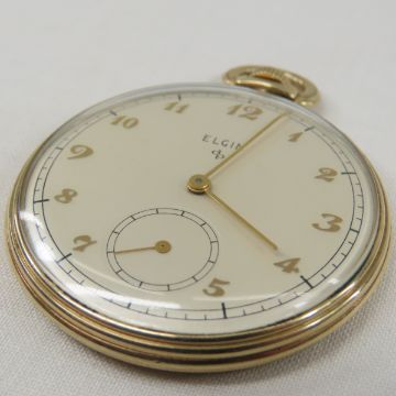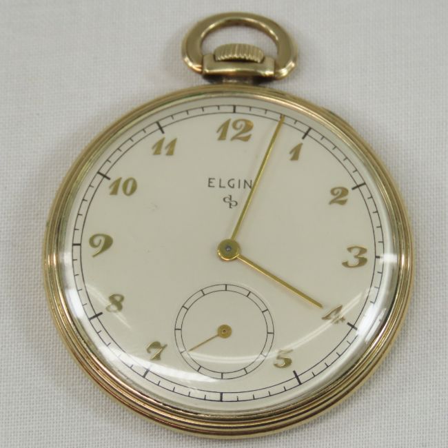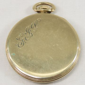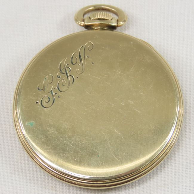 Elgin 15j Pocket Watch on gold filled case, works monogrammed on back of case Please ask questions and read terms & conditions before bidding.