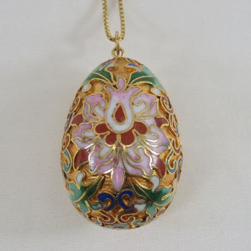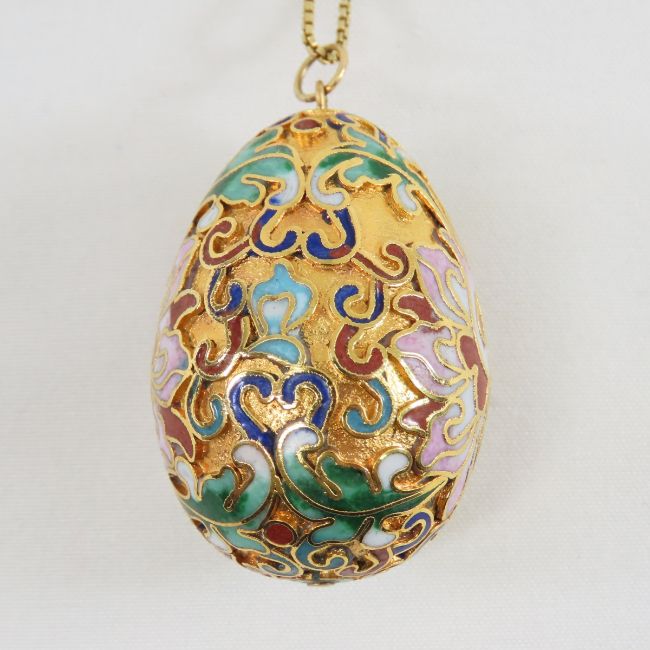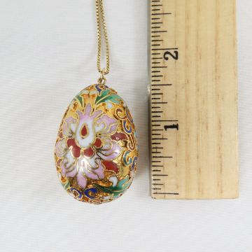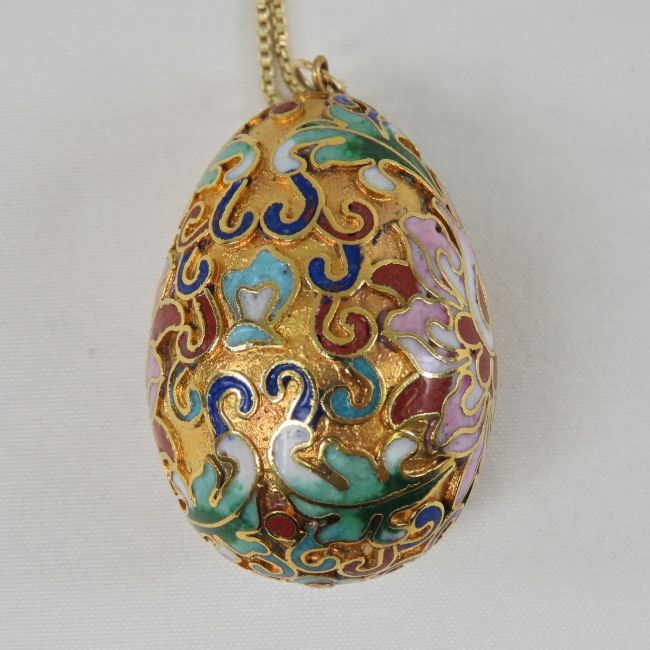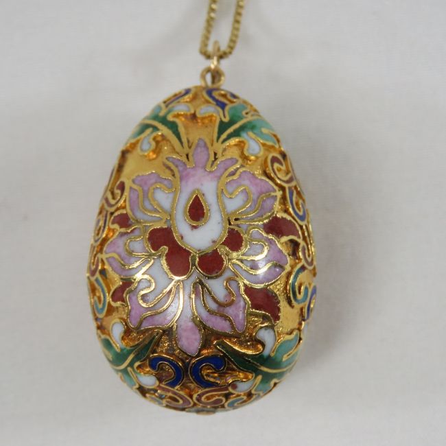 Cloissone Egg Necklace on sterling silver chain sterling vermeil necklace Please ask questions and read terms & conditions before bidding.