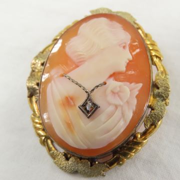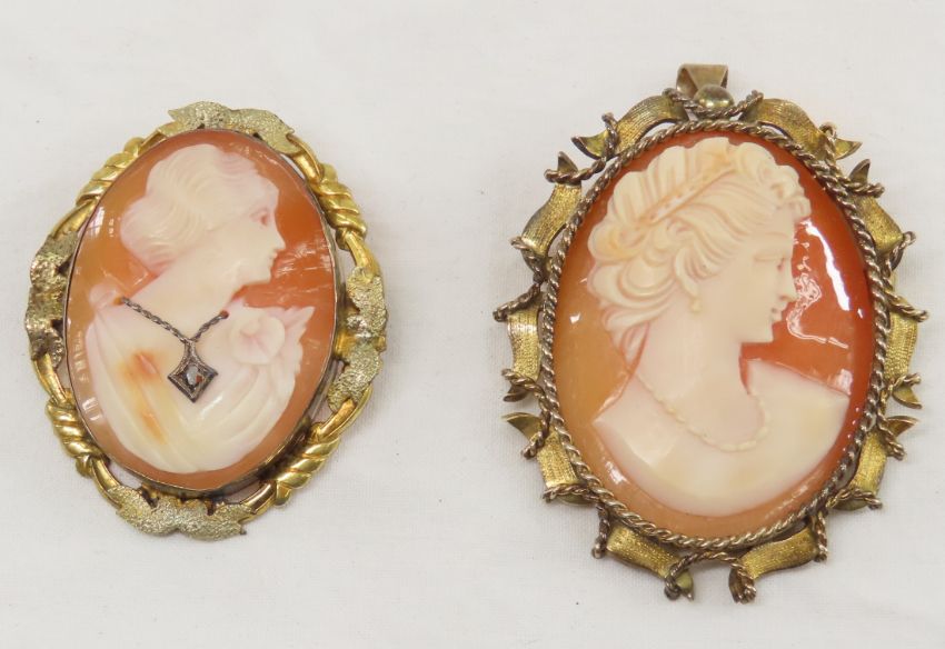 2 Antique Cameo pins, largest is marked 14k Please ask questions and read terms & conditions before bidding.