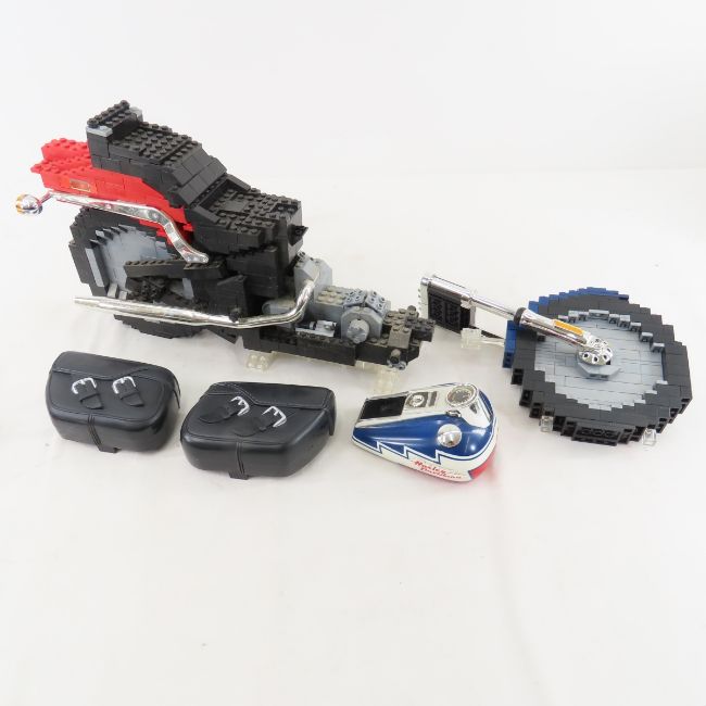 Harley Davidson Stained Glass & Toys LEGO knockoff Harley motorcycle, ornament, Capri speedometer, Star Trek figure and more Please ask questions and read terms & conditions before bidding.
