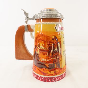 3 Anheuser-Busch Famous Outlaw Steins with boxes Please ask questions and read terms & conditions before bidding.