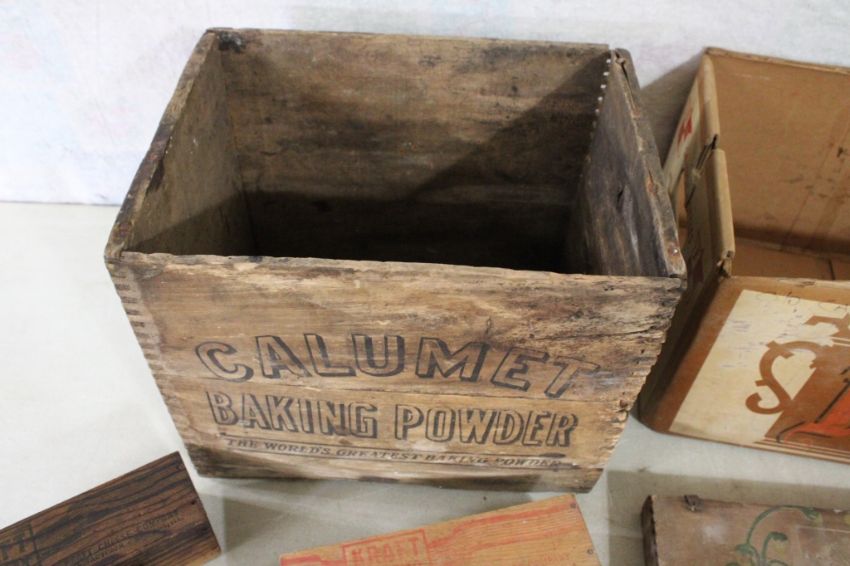 Calumet & Other Wood Boxes, Bub's Beer Crate -Cheese Boxes, Bub's Beer Cardboard Crate, Calumet Wooden Crate/Box & More as pictured. Please ask questions and read terms & conditions before bidding.