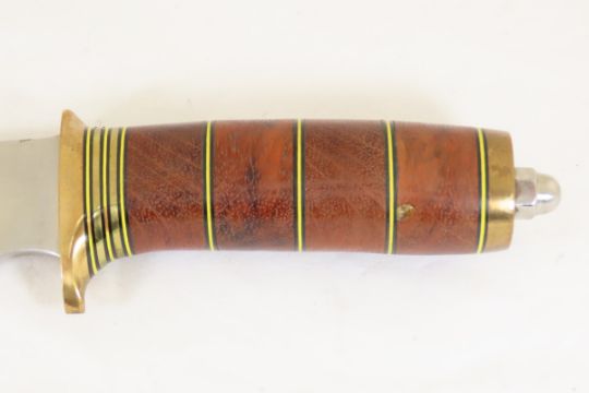 Hand Made Custom Knife by Dr. Robert E Molenaar Steel blade, brass guard & butt, brass & fiber spacers, blade measures 5 inches 9.75 inches overall. Signed R.E.M. Please ask questions & read terms and conditions before bidding.