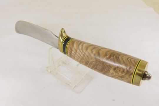 Hand Made Custom Knife by Dr. Robert E Molenaar 5160 steel blade, brass fittings, fiber & Buffalo horn spacers. Oak handle, blade measures 4.5 inches 9.25 inches overall. Signed R.E.M. Please ask questions & read terms and conditions before bidding.