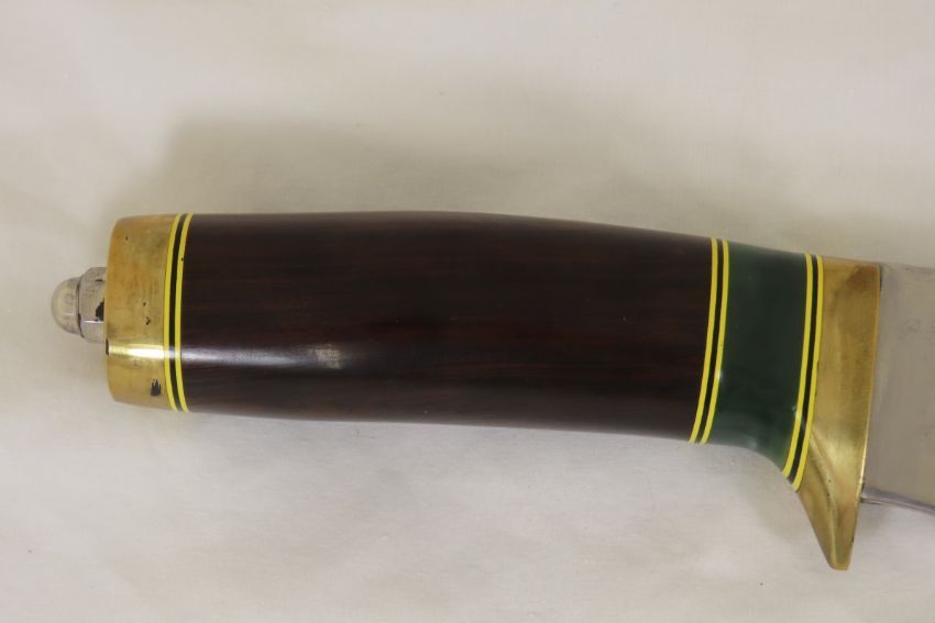 Hand Made Custom Knife by Dr. Robert E Molenaar 5160 steel with file work, brass guard & butt, fiber & Corian spacer's, high-grade desert ironwood, 6.25 inch blade 11.5 inches overall. Signed R.E.M. Please ask questions & read terms and conditions before bidding.