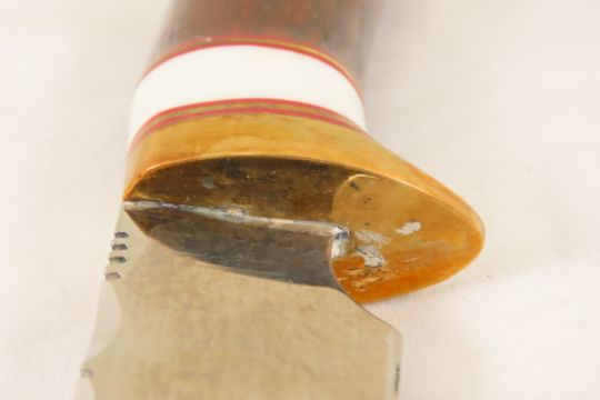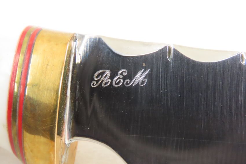 Hand Made Custom Knife by Dr. Robert E Molenaar Steel blade with file work, brass guard & butt, brass & fiber spacers, blade measures 5.75 inches 11.25 inches overall. Signed R.E.M. Please ask questions & read terms and conditions before bidding.