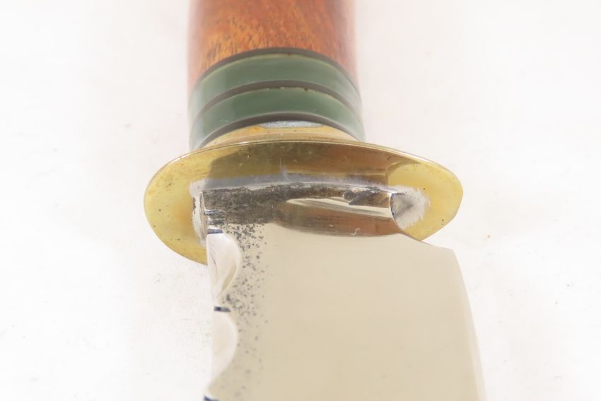 Hand Made Custom Knife by Dr. Robert E Molenaar Steel blade with forge patina & file work. Flared brass guard, fiber & Corian spacers, wood handle, blade measures 3.5 inches, 8.25 inches overall, includes zippered padded case. unsigned Please ask questions & read terms and conditions before bidding.