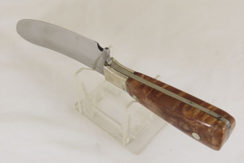 Hand Made Custom Knife by Dr. Robert E Molenaar File steel, Sterling silver bolster, burled walnut handle, knife blade measures just over 4.25 inches overall 8.25 inches. double signed R.E.M & Molenaar Please ask questions & read terms and conditions before bidding.