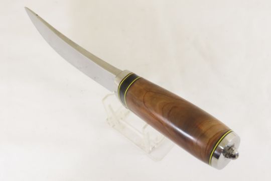 Hand Made Custom Knife by Dr. Robert E Molenaar Steel blade camp knife with finger notch, nickel silver fittings Box Elder handle, fiber spacers blade measures 5 inches 10 inches overall. Signed R.E.M. Please ask questions & read terms and conditions before bidding.