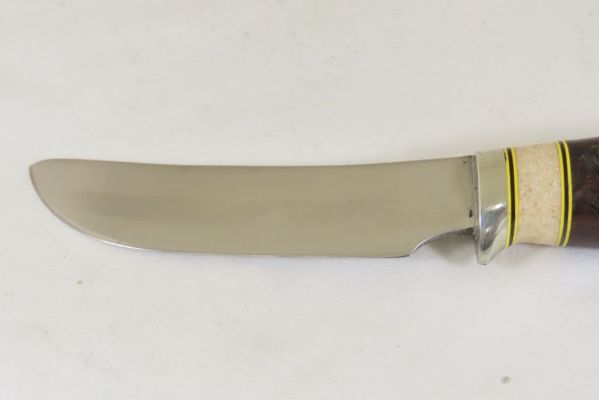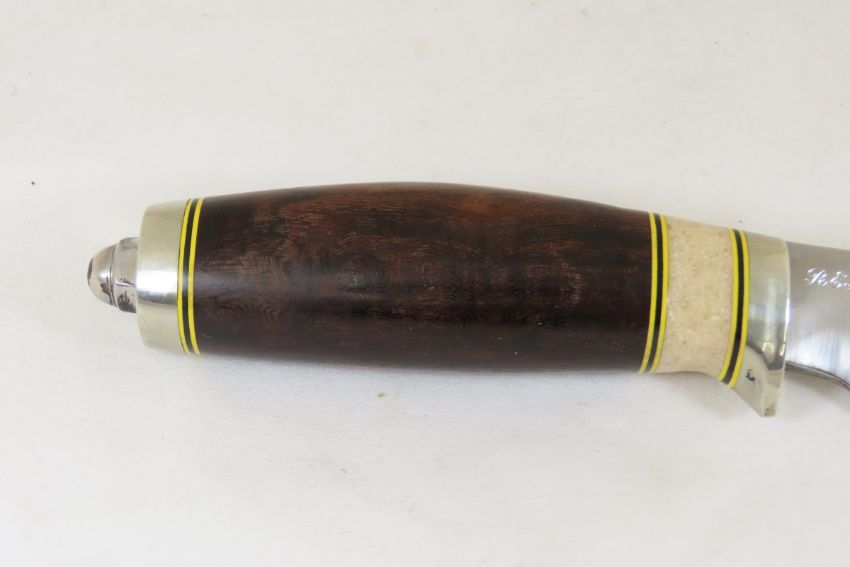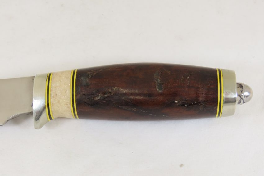 Hand Made Custom Knife by Dr. Robert E Molenaar 52100 ball bearing steel blade, nickel silver fittings, fiber & Corian spacers. Ironwood handle, blade measures 4.5 inches 8.5 inches overall. Signed R.E.M. Please ask questions & read terms and conditions before bidding.