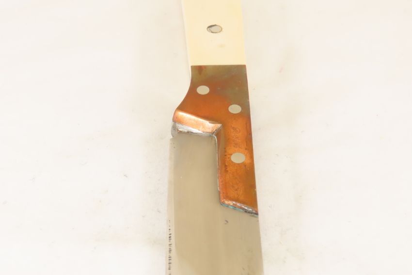 Hand Made Custom Knife by Dr. Robert E Molenaar Steel blade with brass & slab Handle, blade measures 9 inches, 14 inches overall Signed R.E.M. Please ask questions & read terms and conditions before bidding.