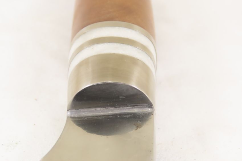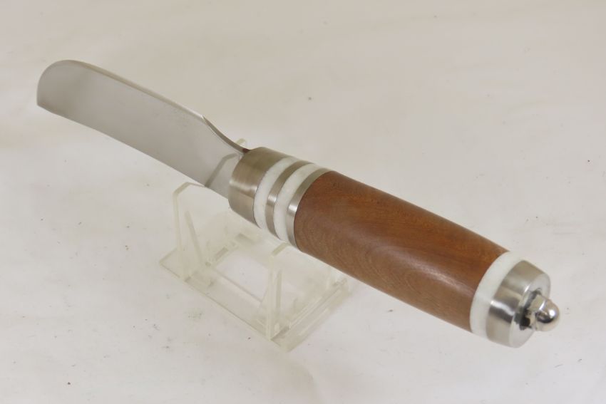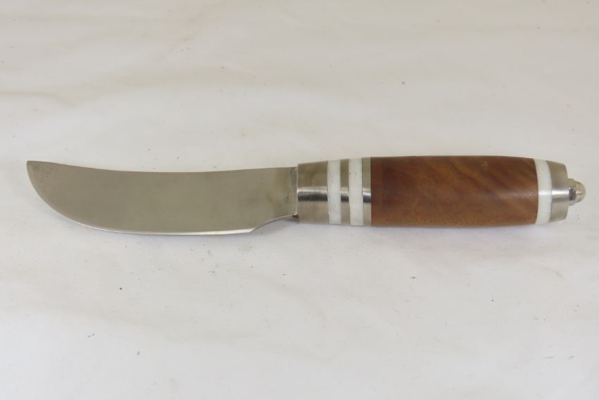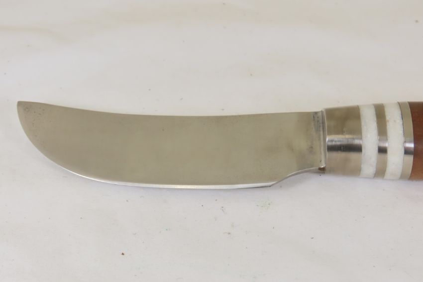 Hand Made Custom Knife by Dr. Robert E Molenaar Steel blade with nickel silver fittings & Corian spacers, wood handle, blade measures. 5 inches, 10 inches overall. unsigned Please ask questions & read terms and conditions before bidding.