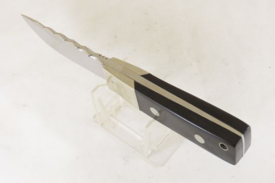 Hand Made Custom Knife by Dr. Robert E Molenaar Steel blade with file work, slab handle with hole for strap blade measures 3.5 inches, 8 inches overall. Signed R.E.M. Please ask questions & read terms and conditions before bidding.