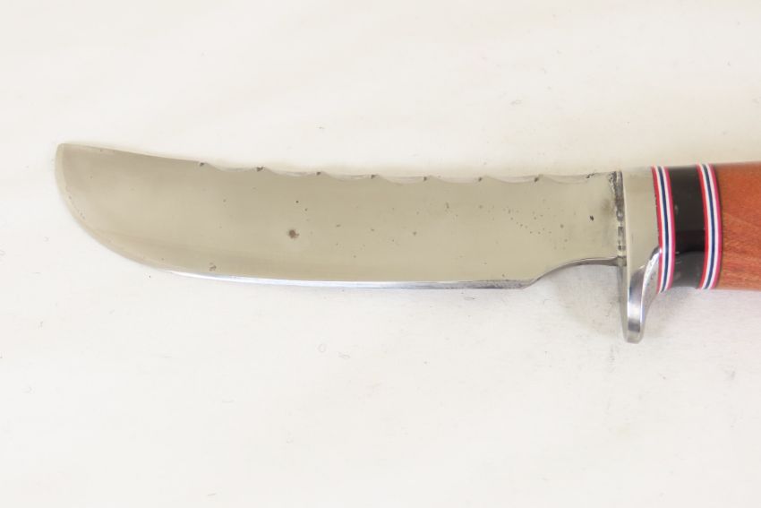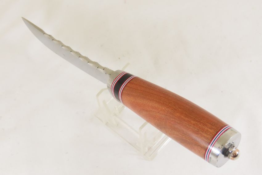 Hand Made Custom Knife by Dr. Robert E Molenaar 5160 steel blade with file work, 416 stainless guard & butt, fiber & plexiglass Spacers, stabilized ash handle, blade measures 4.5 inches, 9 inches overall. Signed R.E.M. Please ask questions & read terms and conditions before bidding.