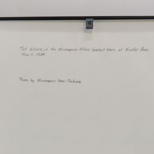 1938 Ted Williams Minneapolis Star-Tribune Photo -of the Minneapolis Millers team at Nicollet park, from the Minnesota Historical Society Collections, in frame 16.25x20.25" Please ask questions and read terms & conditions before bidding.