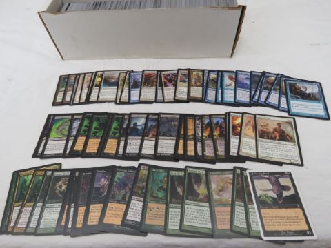 Magic the Gathering Cards -Lot of assorted MTG cards in a 2 row card box Many rares and mythics Many older printings of cards Please ask questions and read terms & conditions before bidding.