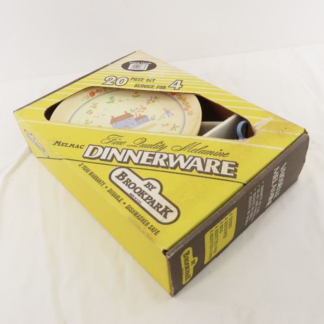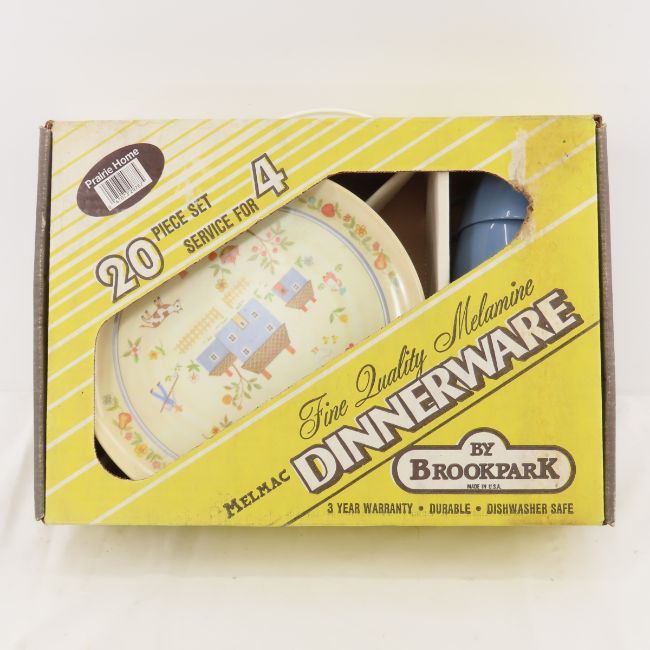Corningware P-4 & Melamine dinnerware with boxes - Please ask questions and read terms & conditions before bidding.