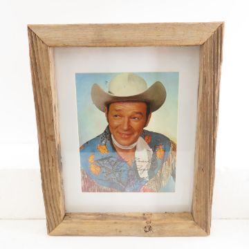 Signed Roy Rogers picture in barn wood frame - Please ask questions and read terms & conditions before bidding.