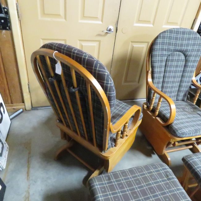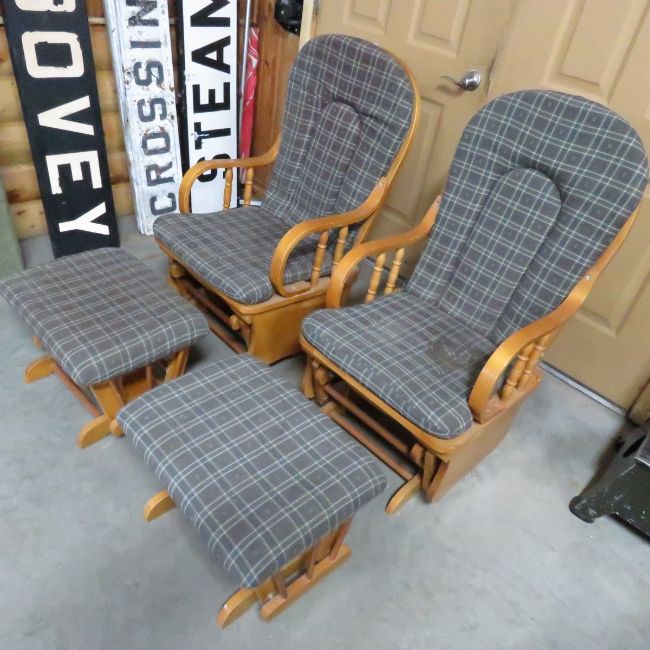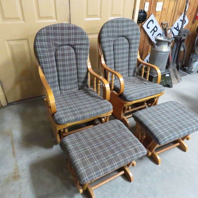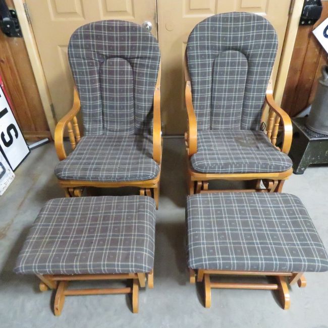 2 Glider Rockers with Foot Stools -Need CLeaning Please ask questions and read terms & conditions before bidding.