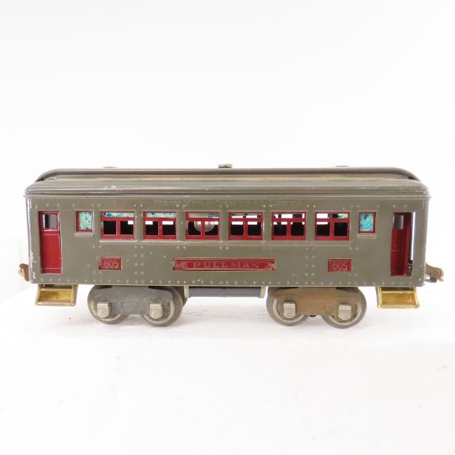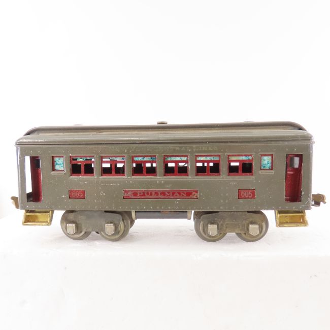 Antique Lionel Electric Train Set in Box -281 engine, 2 Pullman 605 cars and NYC observation 606, box is heavily taped. Also 2 repainted cars- standard gauge Lionel No 517 caboose, and O gauge 2817 caboose Please ask questions and read terms & conditions before bidding.
