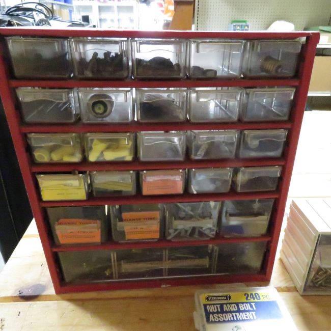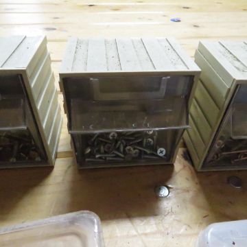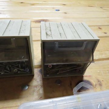 Mixed Hardware, Screws & Nails in Organizers - Please ask questions and read terms & conditions before bidding.
