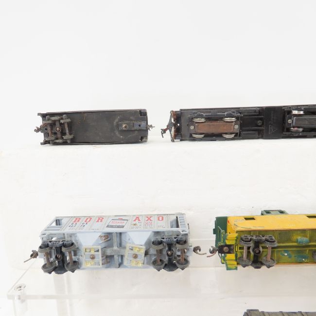 NW and C&NW Engines & Assorted Cars -NW 1619 with tender 1263, C&NW 1516 with tender, C&NW 936, C&NW 238 (is apart), assorted box cars, hoppers, and more, HO scale, untested by us, used cars with wear & tear- some with missing parts- as shown, need cleaning Please ask questions and read terms & conditions before bidding.