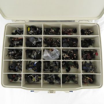 350+ Human D&D mini figures in case -many duplicates, some sealed, some unique Please ask questions and read terms & conditions before bidding.
