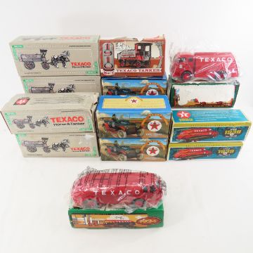 TEXACO Diecast car and bank collection -some water damage to boxes Please ask questions and read terms & conditions before bidding.