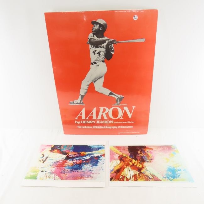 Vintage Hank Aaron Autobiography Poster -and 2 color copy prints of Leroy Neiman Art- Hank Aaron and Willie Mays, Poster is shrink wrapped to foam board 19x25" The Exclusive, official Autobiography of Hank Aaron. Thomas Y. Crowell Co., Inc. 1974 Please ask questions and read terms & conditions before bidding.
