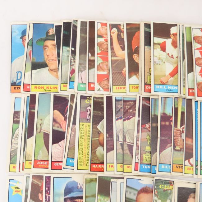 160+ 1961 Topps Baseball Cards - Skowron -Skowron in good condition, Maris is damaged, other in fair to good condition Please ask questions and read terms & conditions before bidding.