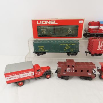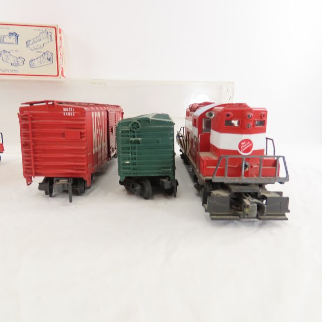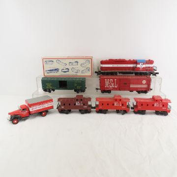 Lionel M&STL Locomotive 8867 & More -loco 8867, 2 box cars, 97442 box car with box, 3 cabooses, all O gauge & untested by us. Also a M&STL coin bank w/key Please ask questions and read terms & conditions before bidding.