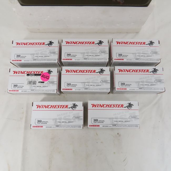 Ammunition 400 rounds Winchester .38 special-8 boxes of 50 rounds, 130gr in metal ammunition can Please ask questions and read terms & conditions before bidding.