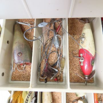 Large tackle box filled with lures & gear - Please read terms & conditions and ask questions before bidding.