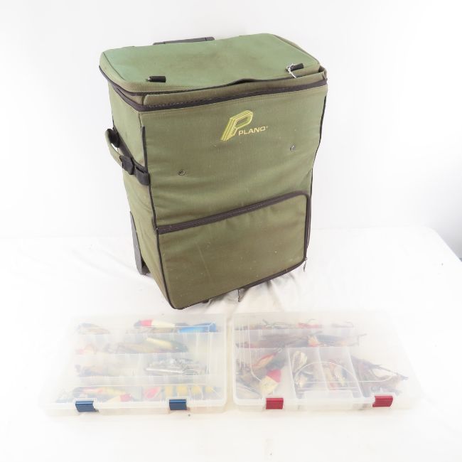 Packed Plano Travel Tackle Box, Old Lures & Reels - Please read terms & conditions and ask questions before bidding.