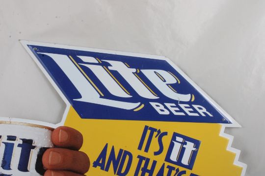 Miller Lite Pilsner Beer Metal Sign - Measures 19" L x 16" High Please ask questions and read terms and conditions before bidding.