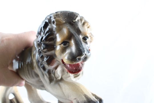 Antique Chalkware Lion Carnival Prize - Measures 9 1/2" Long x 8" Tall Please ask questions and read terms and conditions before bidding.