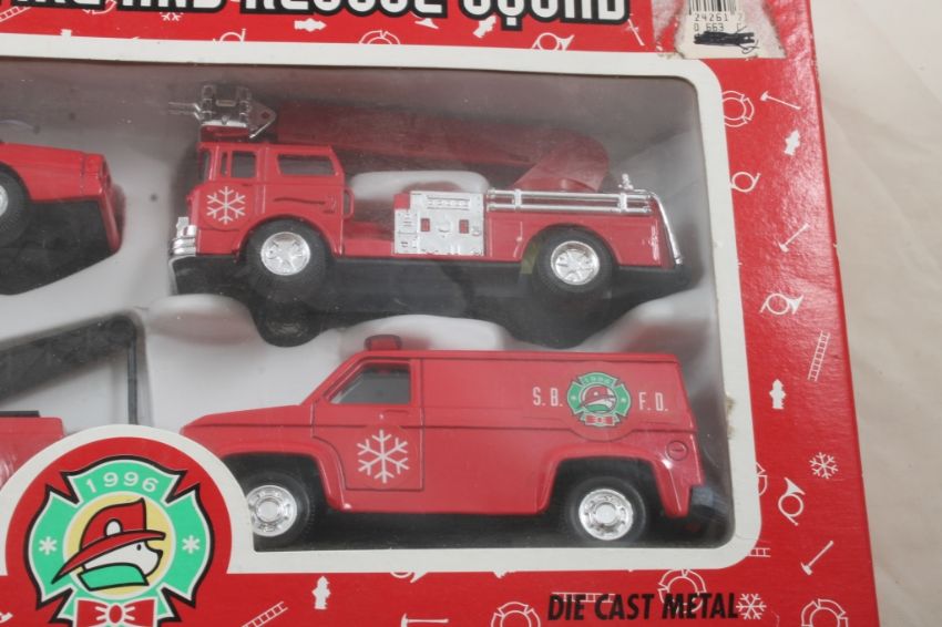 Fire Dept. Medal/Ribbon, Diecast Fire Vehicles - Santabear Fire and rescue Squad includes 4 diecast vehicles in box Please ask questions and read terms and conditions before bidding.
