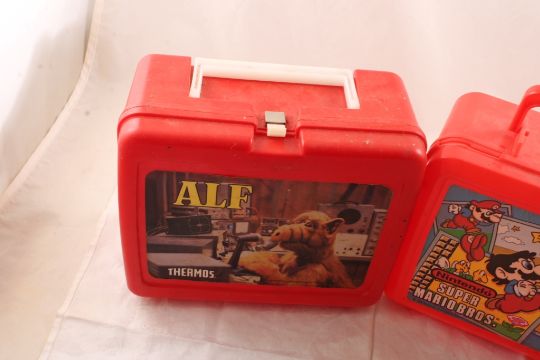 Alf & Super Mario Bros. Lunch Boxes w/Thermos - Nintendo Super Mario Bros. 1988 Aladdin Brand Lunchbox with Thermos & Alf 1987 Thermos Brand Lunchbox with Thermos. both as pictured.Please ask questions and read terms and conditions before bidding.