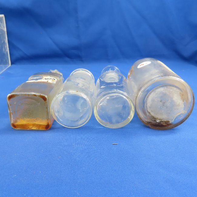 23 Antique Apothecary Bottles - some missing stoppers, some extras that don't fit, purple has broken lip. Many items from this collection are from Dr. Thomas Russell and the Itasca County Historical Society. Please read terms & conditions and ask questions before bidding.