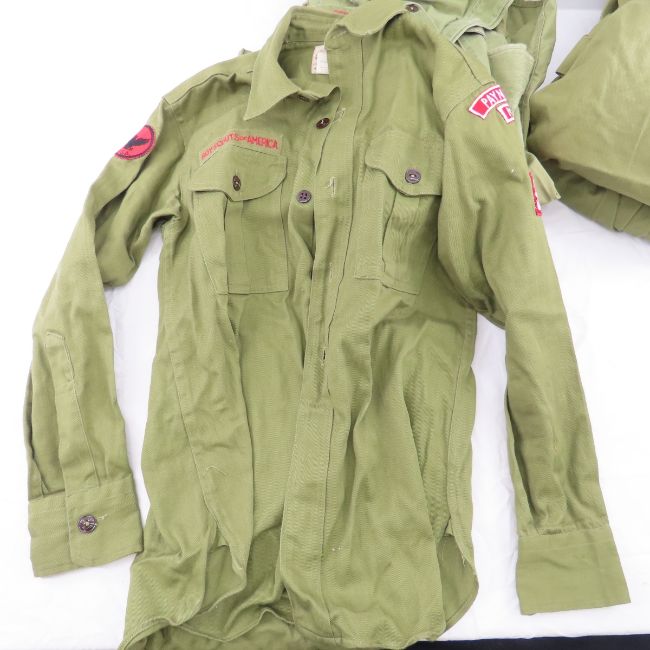 Vintage Boy Scouts Uniforms, Neckerchiefs & More - Insignia pins, neckerchiefs, slides, shirts, pants, caps, sashes, some patches Please read terms & conditions and ask questions before bidding.