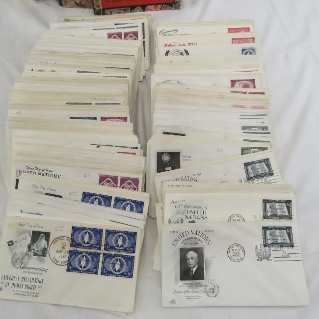 First Day Covers, Postmarks, Stamps & Books - Late 1800-1960's, many WWII postmarks, most 1st day covers are 1950's Please read terms & conditions and ask questions before bidding.