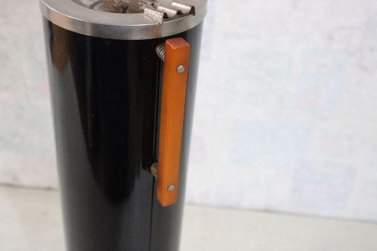 Art Deco 1940's Floor Ashtray Bakelite Handles - Butterscotch Bakelite handles on this Art deco Floor Metal Ashtray that stands 22" Tall. As pictured. Please ask questions and read terms & conditions before bidding.