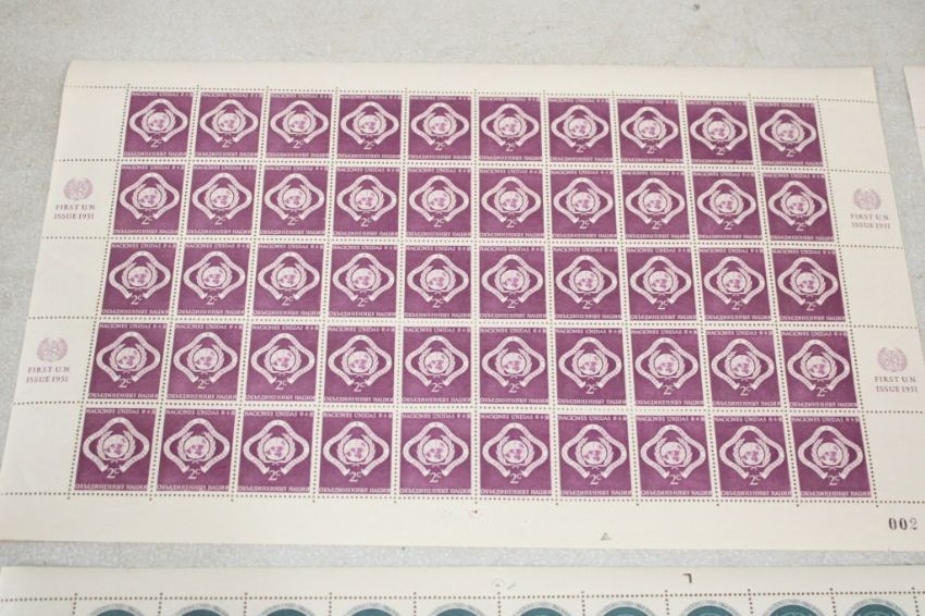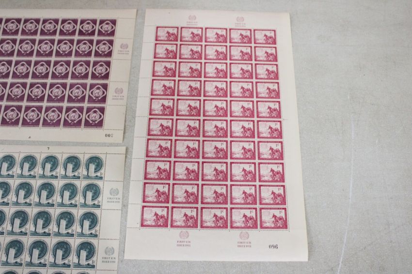 1951 First U.N. Issue Stamps - 50 One Cent, 50 One & One Half Cents and 50 Two Cent Stamps. As pictured. Please ask questions and read terms & conditions before bidding.