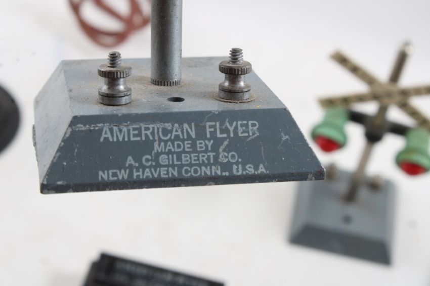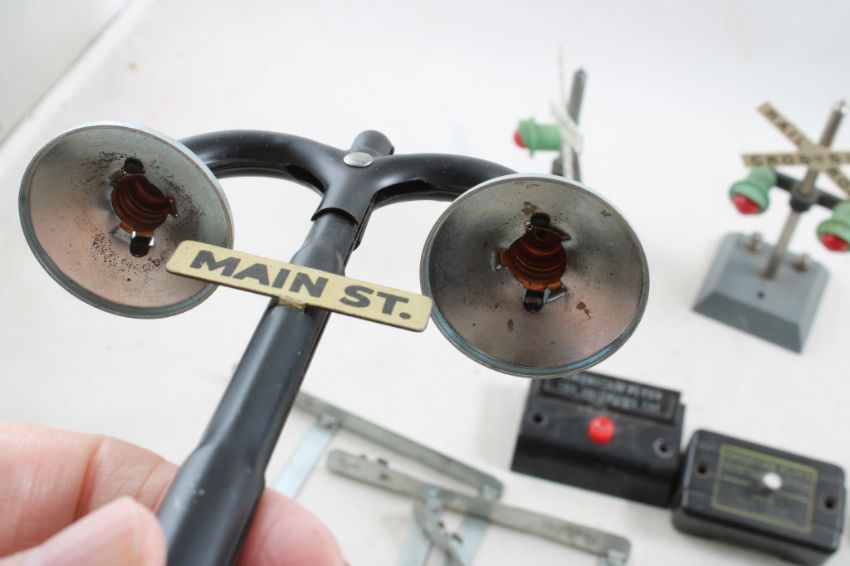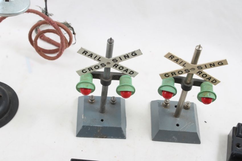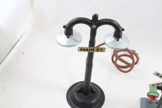 Marx & American Flyer Train Accessories - Marx Double Goose Neck Street Lamp, 2 American Flyer 3760 Crossing Signals, Ass't. of switches. All as pictured. Please ask questions and read terms & conditions before bidding.