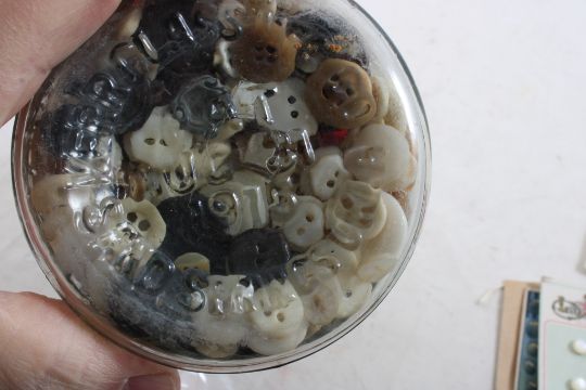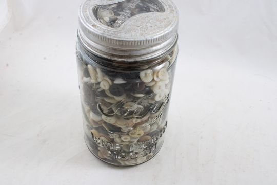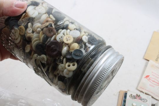 Kerr Wide Mouth Qt Jar, Vintage Buttons, Matches - All as pictured. Please ask questions and read terms & conditions before bidding.
