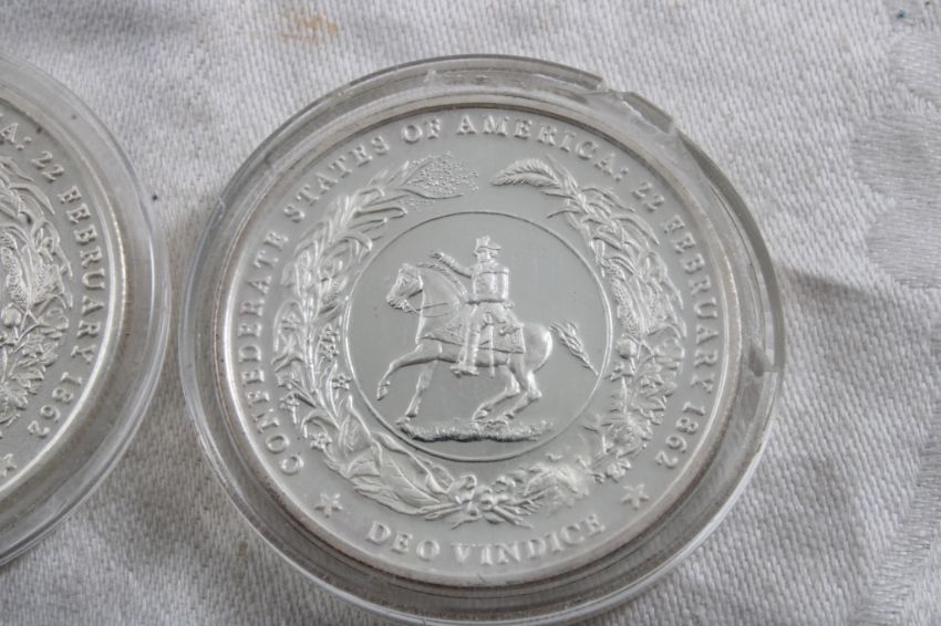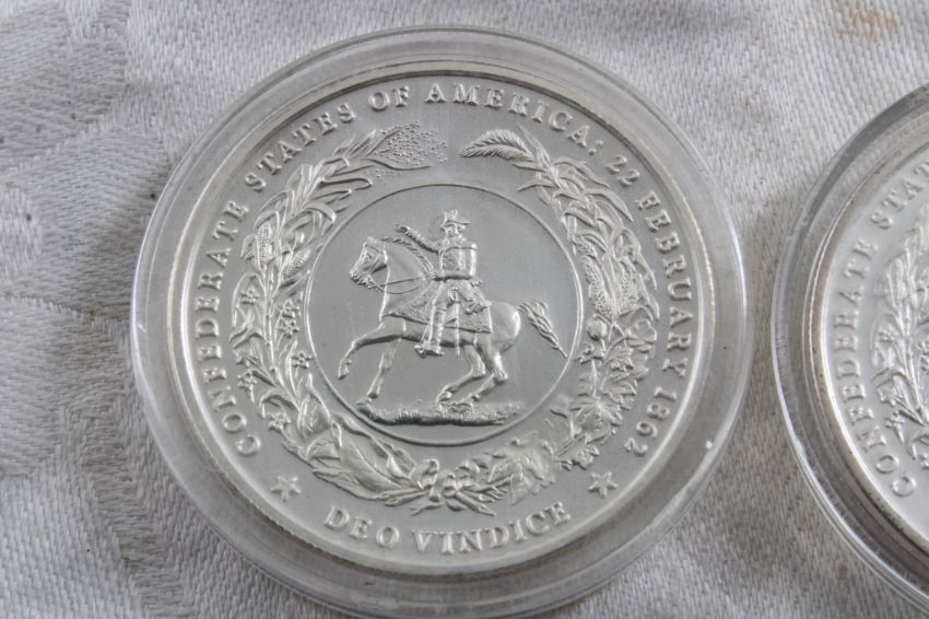 2 Confederate States Deo Vendici Silver Tokens - Louisiana & Texas as pictured. Please ask questions and read terms & conditions before bidding.